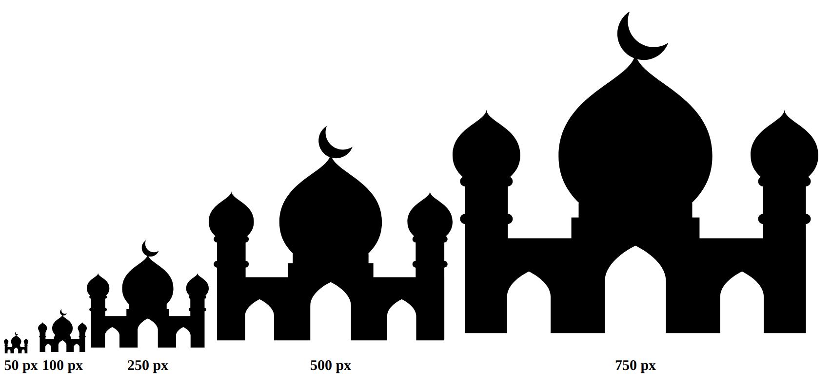 Büyütüldüğü zaman bozulma olmadığını göstermek için özellikle kıvrımları olan bir şekil seçtim. Şimdi bu svg dosyasında yer alan camii ikonunu farklı boyutlarda kullanalım, bakalım bozulma olacak mı?